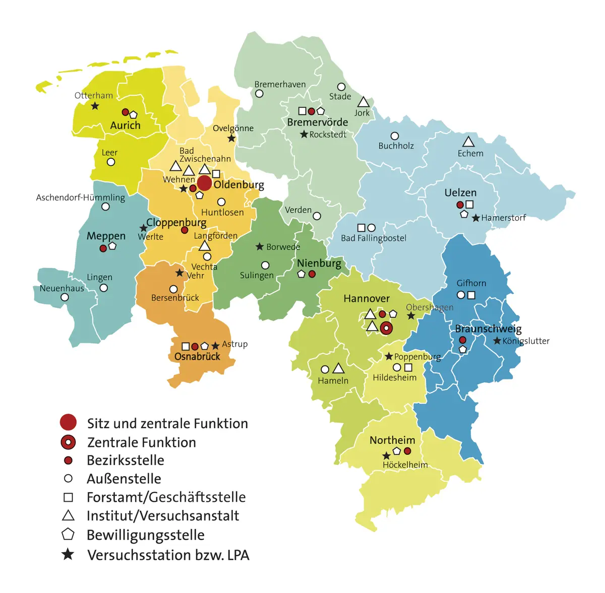 In Niedersachsen gibt es 10 Bewilligungsstellen (BWST). Für Sie ist die BWST zuständig, in deren Landkreis Ihre in Niedersachsen bewirtschafteten Flächen liegen.